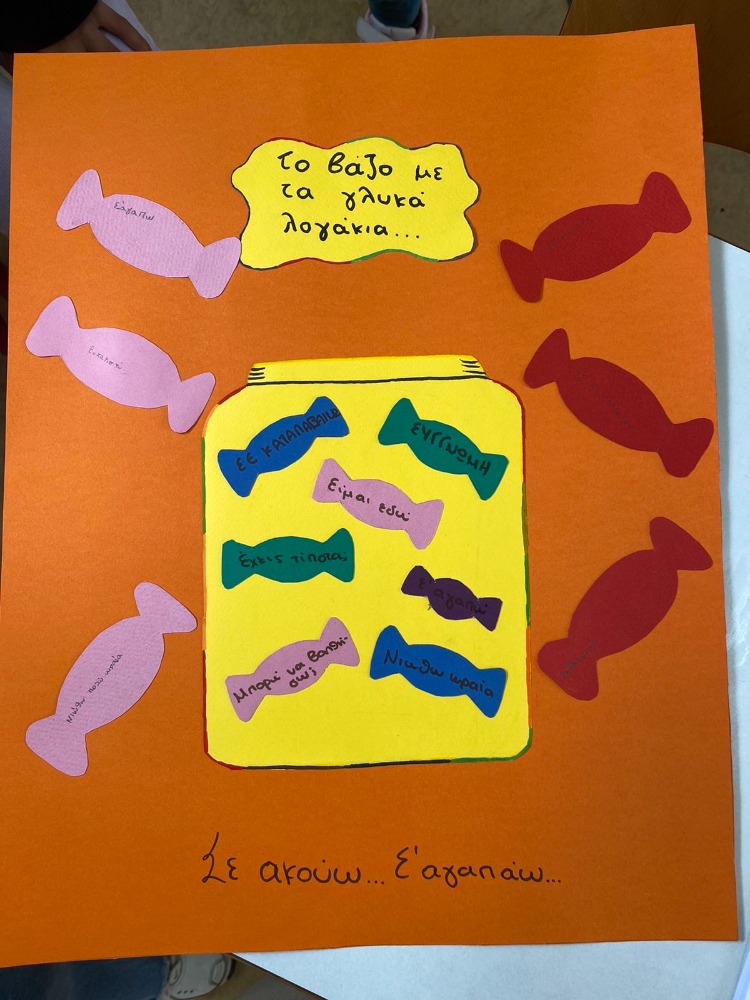 Στην τρίτη συνάντηση του παιδαγωγικού project με τίτλο "Όλοι ξεχωριστοί, όλοι ίσοι", συζητήθηκαν τρόποι επικοινωνίας με θετικό πρόσημο, καλές κουβέντες και φτιάχτηκε το βάζο με τα "γλυκά λογάκια".